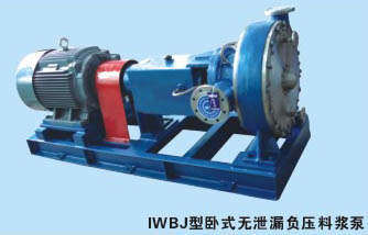 IWBJ型卧式无泄漏负压料浆泵是我厂的新技术基础上,结合我厂多年专营经验,把传统前端轴向吸液改成原体内侧向吸液,使轴压处于负压状态,彻底解决了泄漏问题。