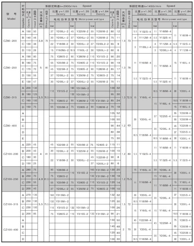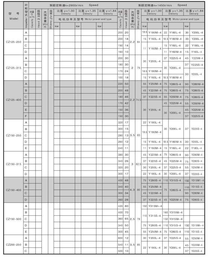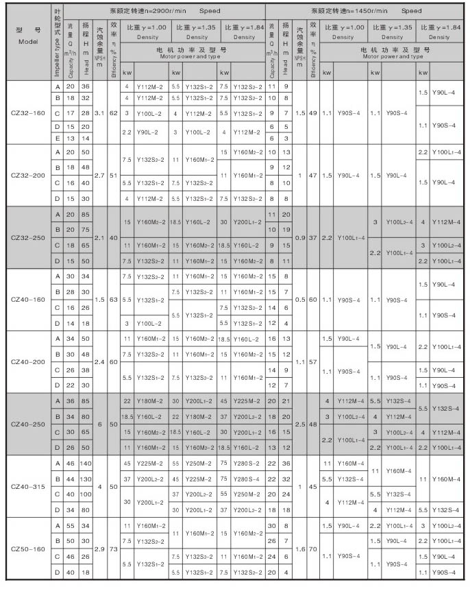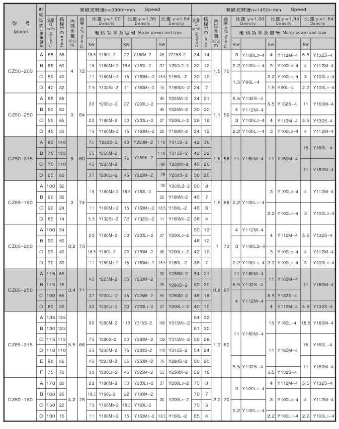 CZ系列标准化工泵的性能范围包括了IH系列标准化工泵所有性能,其效率、汽蚀性能等指标均超过IH泵,可与IH型泵进行单机互换。 |