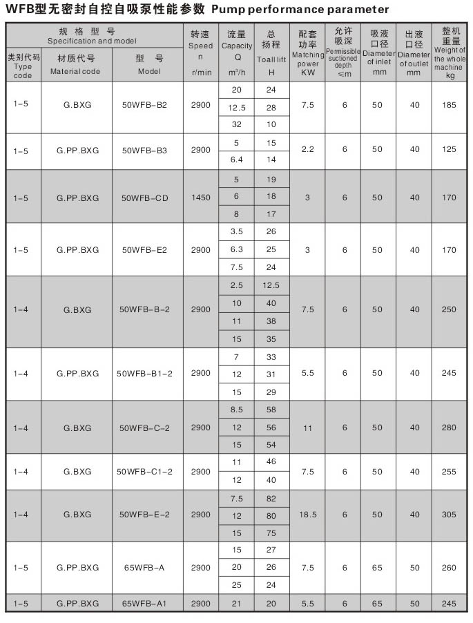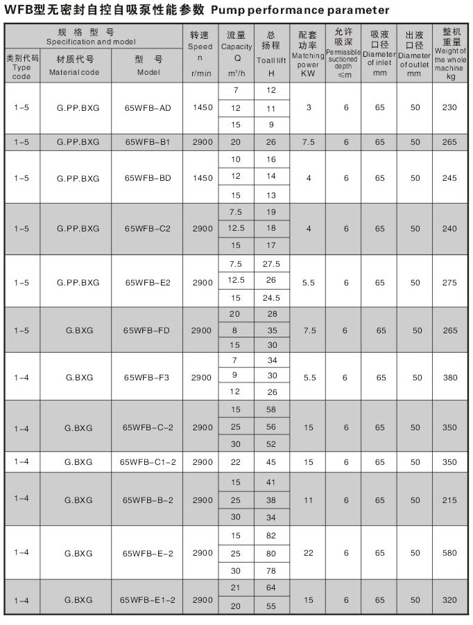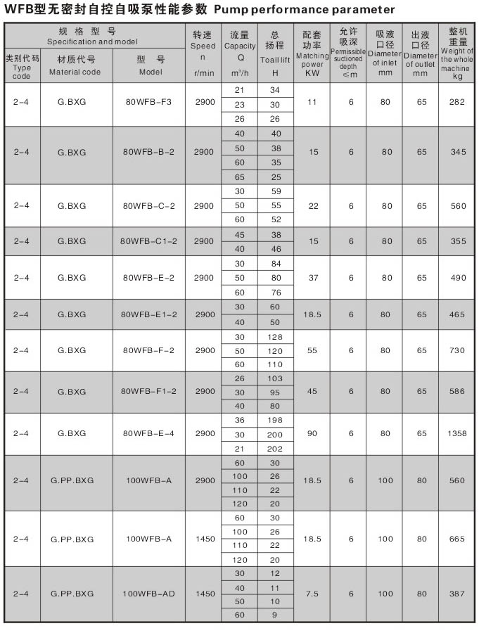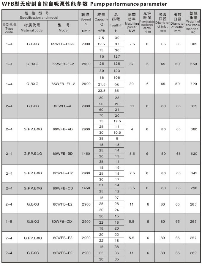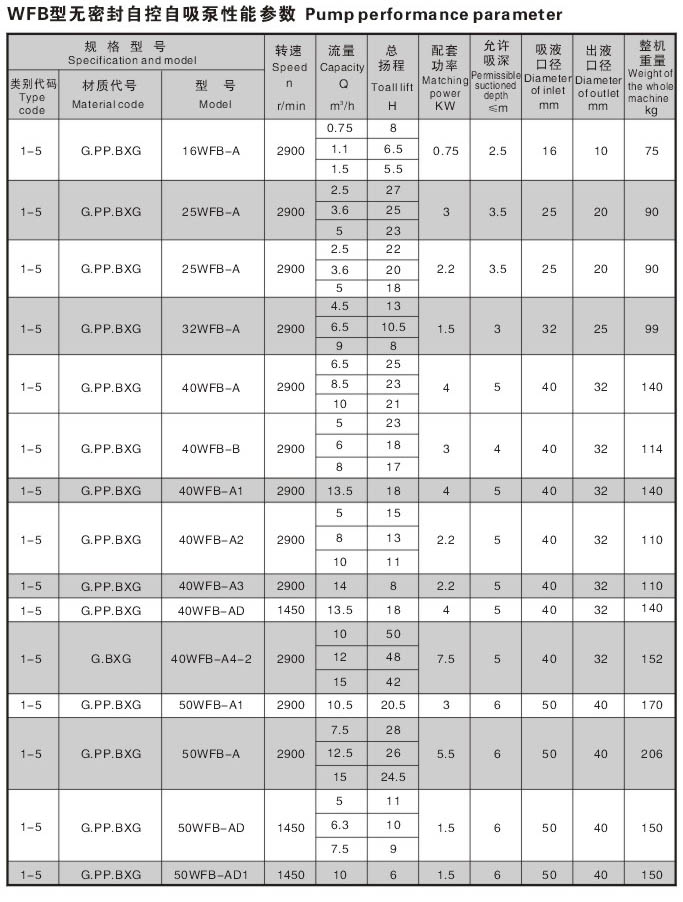 WFB型无密封无泄漏自控自吸泵采用“连环式”多面离心密封装置,无“跑,冒,滴,漏”之忧。由于运行过程无密封装置摩擦,无磨损,因此,使用寿命较同类产品延长数倍。