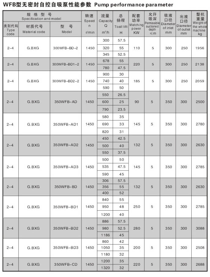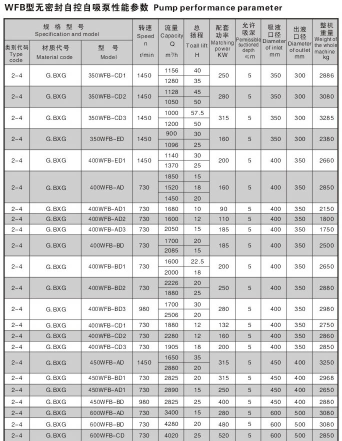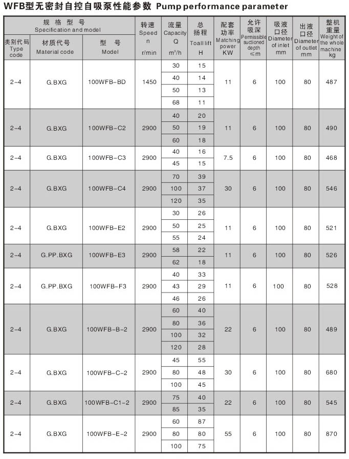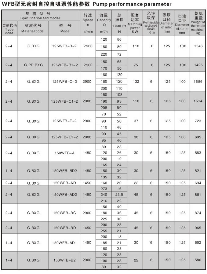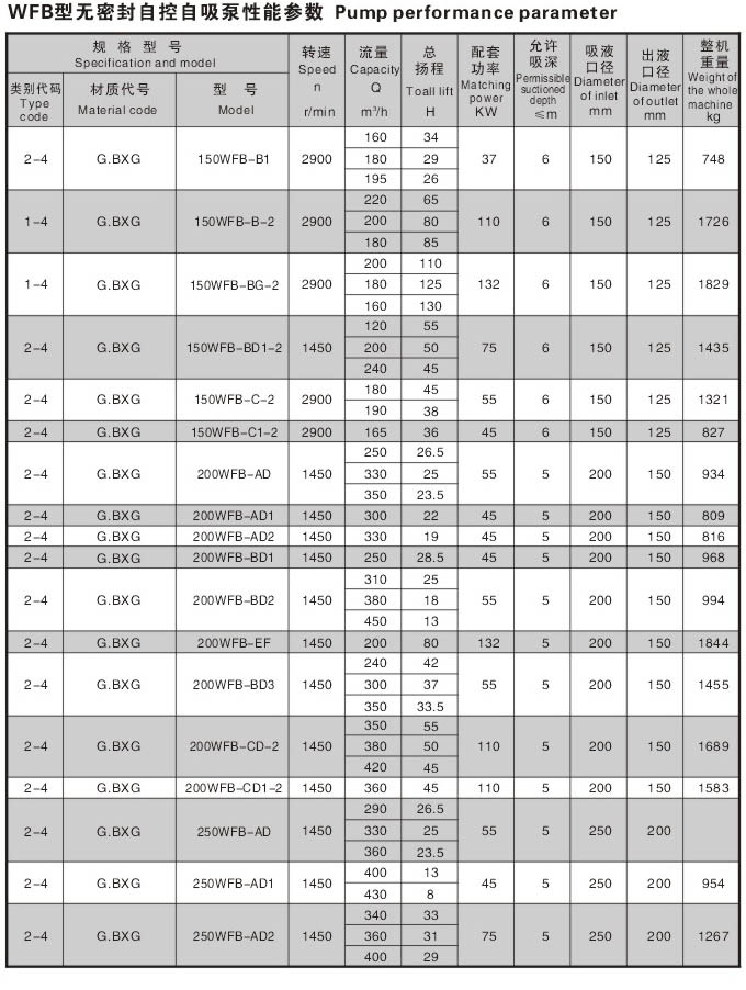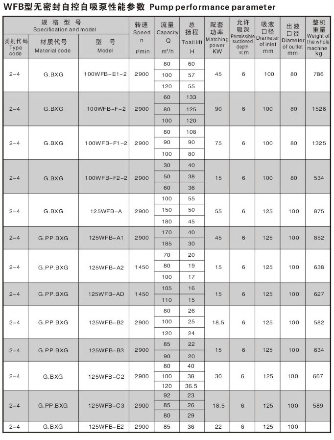 WFB型无密封无泄漏自控自吸泵采用“连环式”多面离心密封装置,无“跑,冒,滴,漏”之忧。由于运行过程无密封装置摩擦,无磨损,因此,使用寿命较同类产品延长数倍。