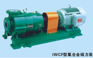 IWCF型氟合金磁力泵是应用现代磁力学原理,采用永磁体实现无接触间接传动的一种化工流程泵。当电机带动外转子(即外磁钢)总成旋转时,通过磁场的作用磁力线穿过隔离套带动内转子(即内磁钢)总成和叶轮同步旋转,介质完全封闭在静止的隔离套内,从而达到无泄漏抽送介质的目的,彻底解决了机械传动泵的轴封泄漏,是全密封,无泄漏,无污染的新型工业泵。IWCF型磁力泵是化工流程中杜绝跑、冒、滴、漏现象,消除环境污染,创造“无泄漏车间”、“无泄漏工厂”,实现安全、文明专营的理想用泵。