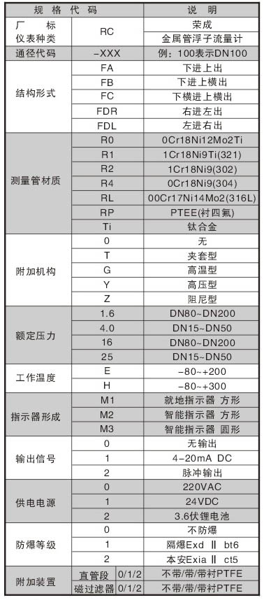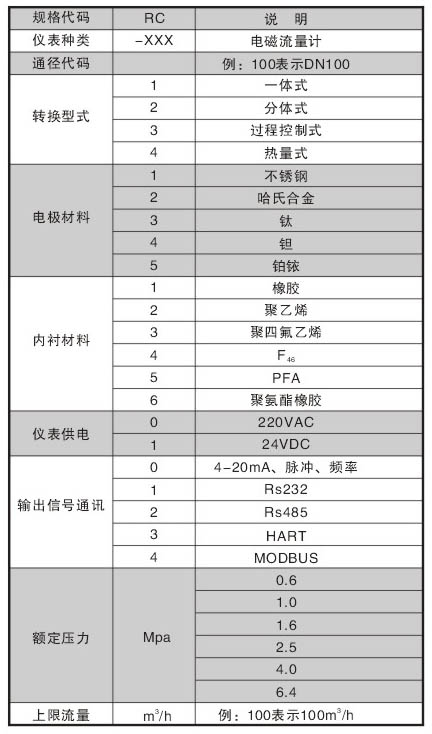 | 选型说明:(本选型说明适应所有流量计选型) |