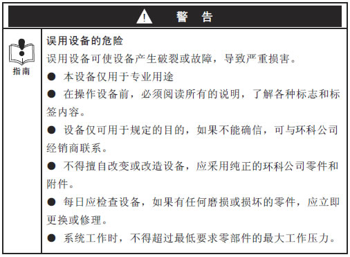 ● 必须始终使用环科公司纯正零件的附件。