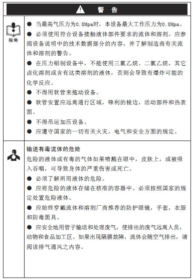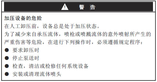 ● 检查或维修设备以前必须卸压。