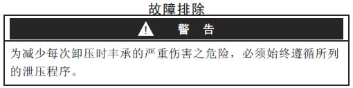 | 1.关闭通往泵的空气。 2.如使用配液阀,应打开。3.开启流体放泄阀,卸除所有流体压力,并准备好排泄液的容器。 |